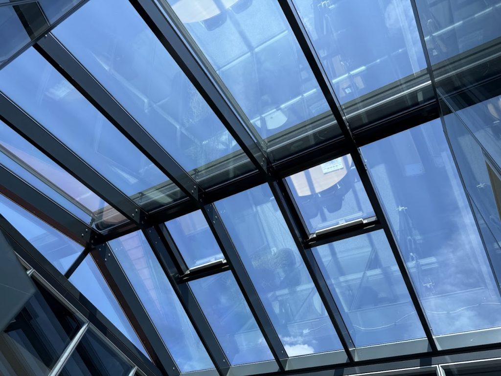 Wir montieren verschiedenen Flachglasfolien an Gebäudeglas wie zB. verspiegelte Sonnenschutzfolien als UV Und Sichtschutz.