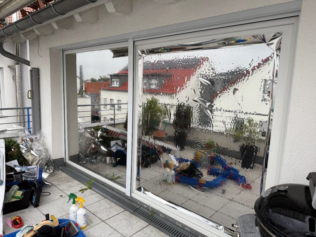 Spiegelfolie an Fenstern in Nürtingensilberne Sonnenschutzfolie an Fenstern und TürenUV Schutzfolie mit spiegelefect